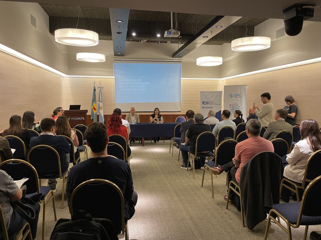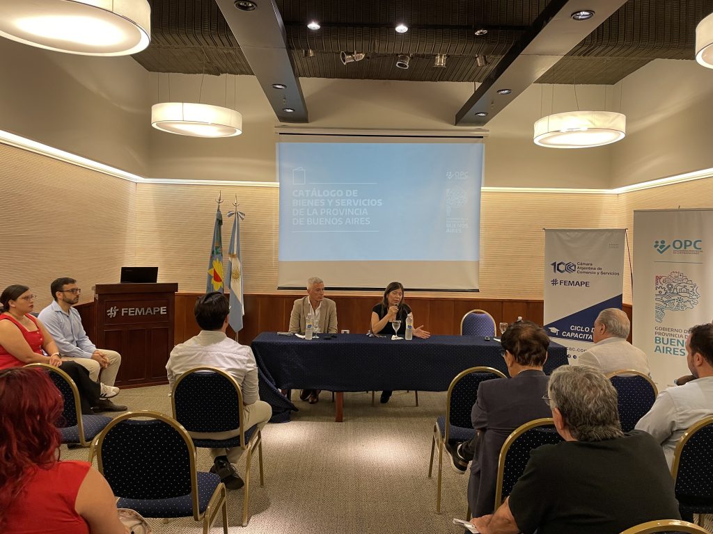 Hoy tuvo lugar, en el auditorio de FEMAPE, el primer encuentro de la capacitación “Proveedores en las Contrataciones Públicas de la Provincia de Buenos Aires”, que contó con la presencia del presidente de la entidad, Daniel Amato, el asesor legal Rodrigo Ducha, numerosos directores y empresarios proveedores del Estado asociados a FEMAPE y Victoria Anadón, directora ejecutiva del Organismo Provincial de Contrataciones, a quien acompañó el panel técnico del OPC, que desarrollaron la capacitación.